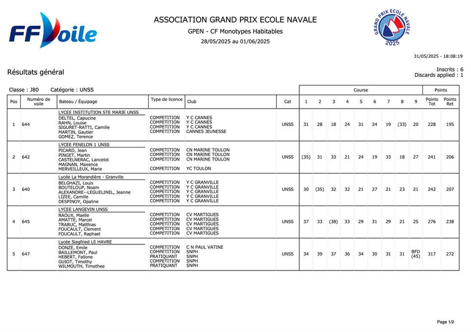 ⛵️Dans le cadre de conventions entre l’UNSS et Marine nationale, 6 équipages UNSS ont été qualifiés à participer au GPEN sur le support J80, organisé par l’Association de soutien au Grand Prix de l’Ecole Navale (AGPEN) en lien avec la FFVoile et l’Ecole navale.
